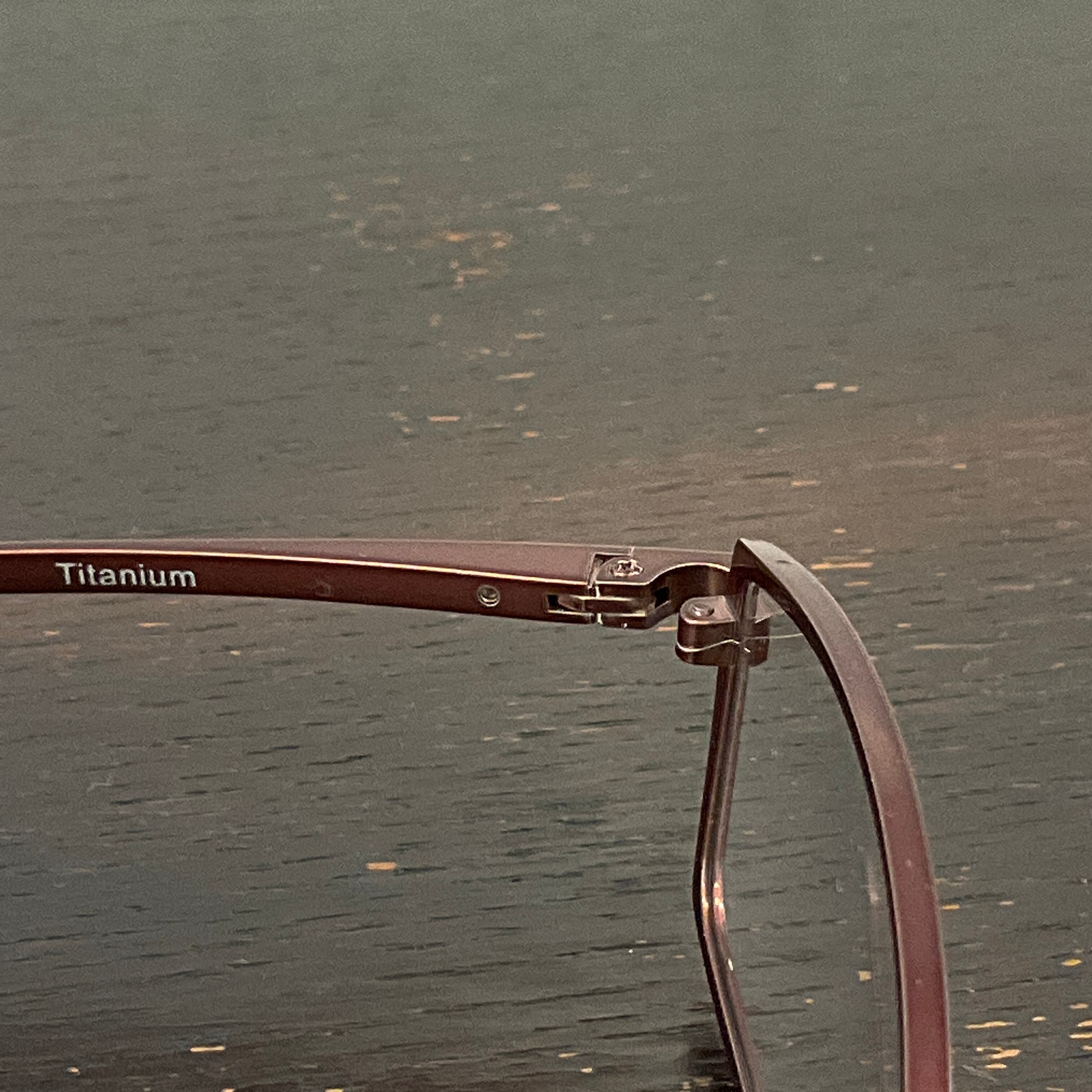 特徴:ばね式丁番、ストレートに近いテンプルでスタイリッシュな印象